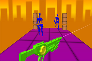 游戏内面对着步步紧逼的机器人,你需要拿起射线枪切碎机器人来解救人类,使用各种射线枪消灭所有的机器人即可通关,快来体验一下吧。
