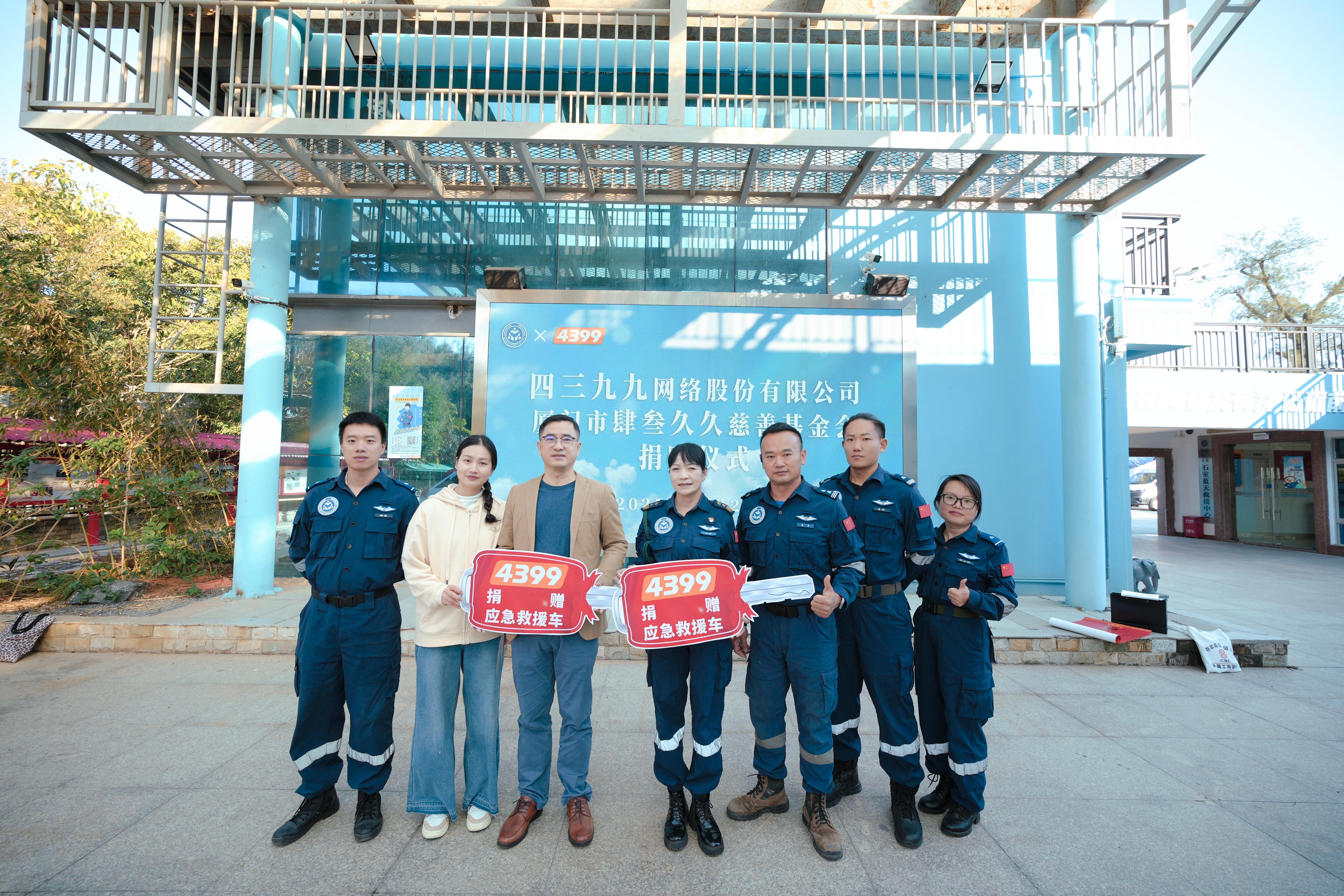 2025年12月29日下午,肆叁久久慈善基金会向蓝天救援队“暖阳行动”捐赠两辆救援车辆,专项用于老旧小区瘫痪及重病老人的非医疗转运服务。四三九九党委书记、副总裁戴建宏出席现场交付仪式。